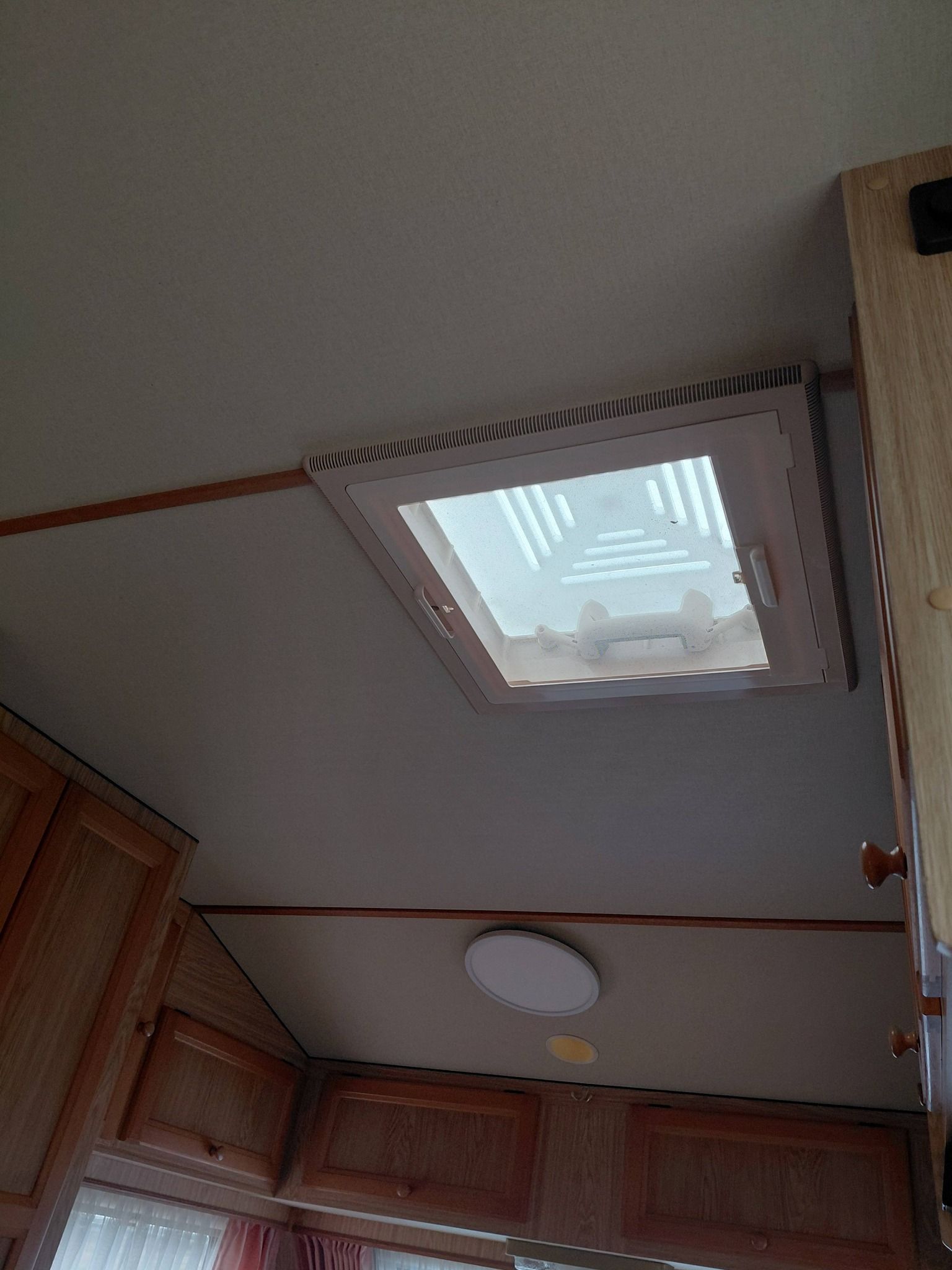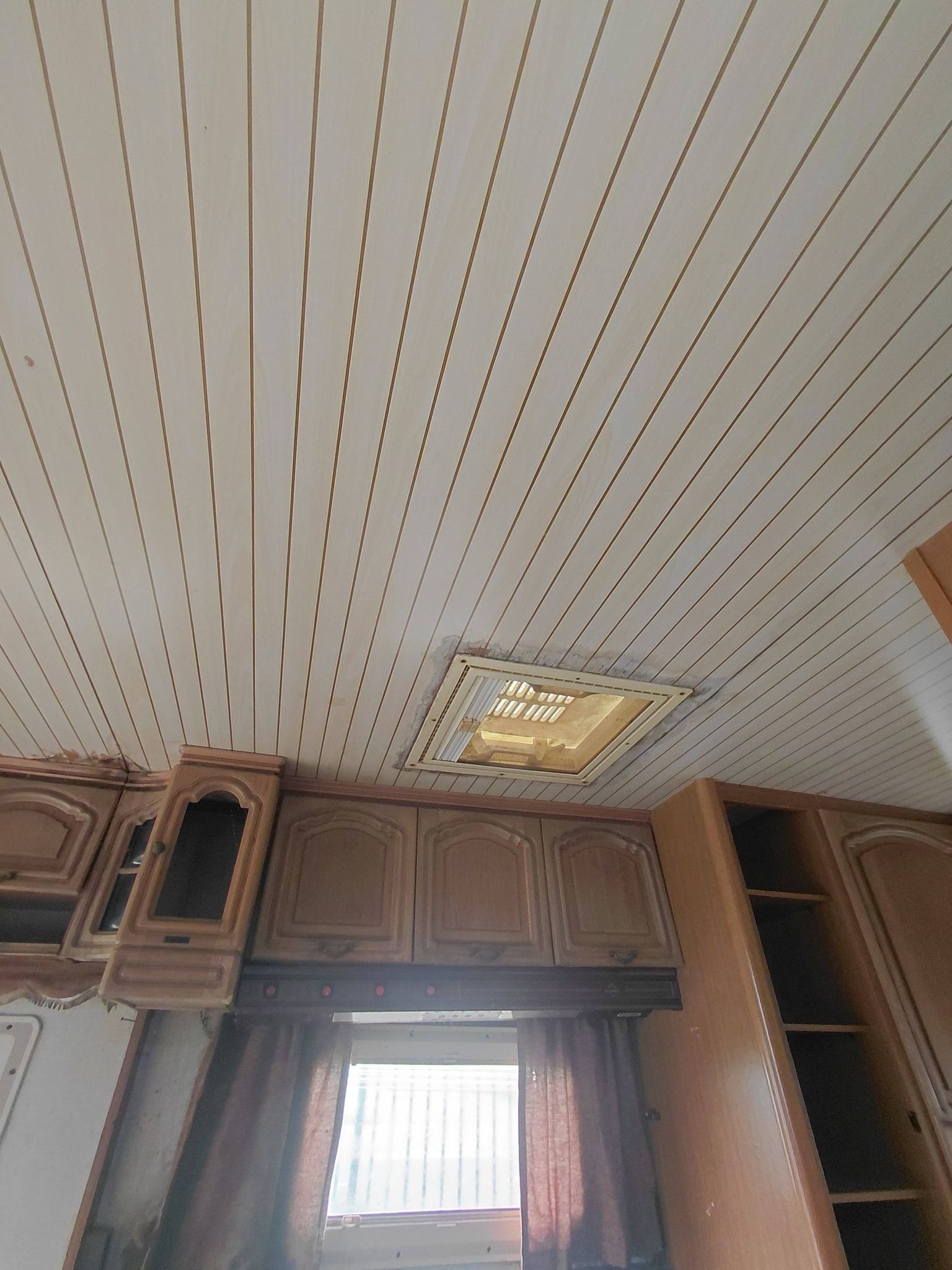 Caravan heeft bij dakluik oude vochtschade niets ernstigs verder gewoon droog en lek vrij.