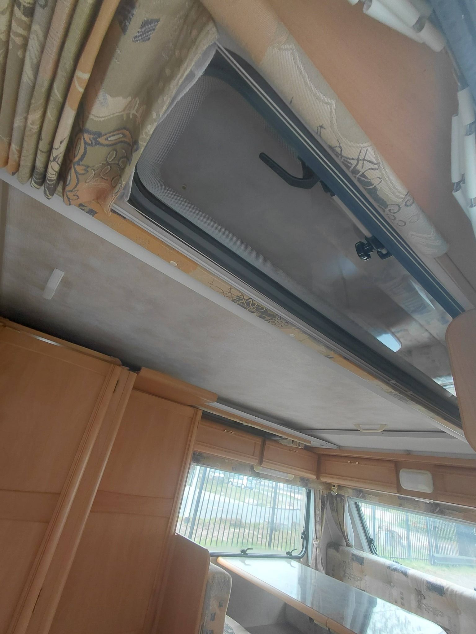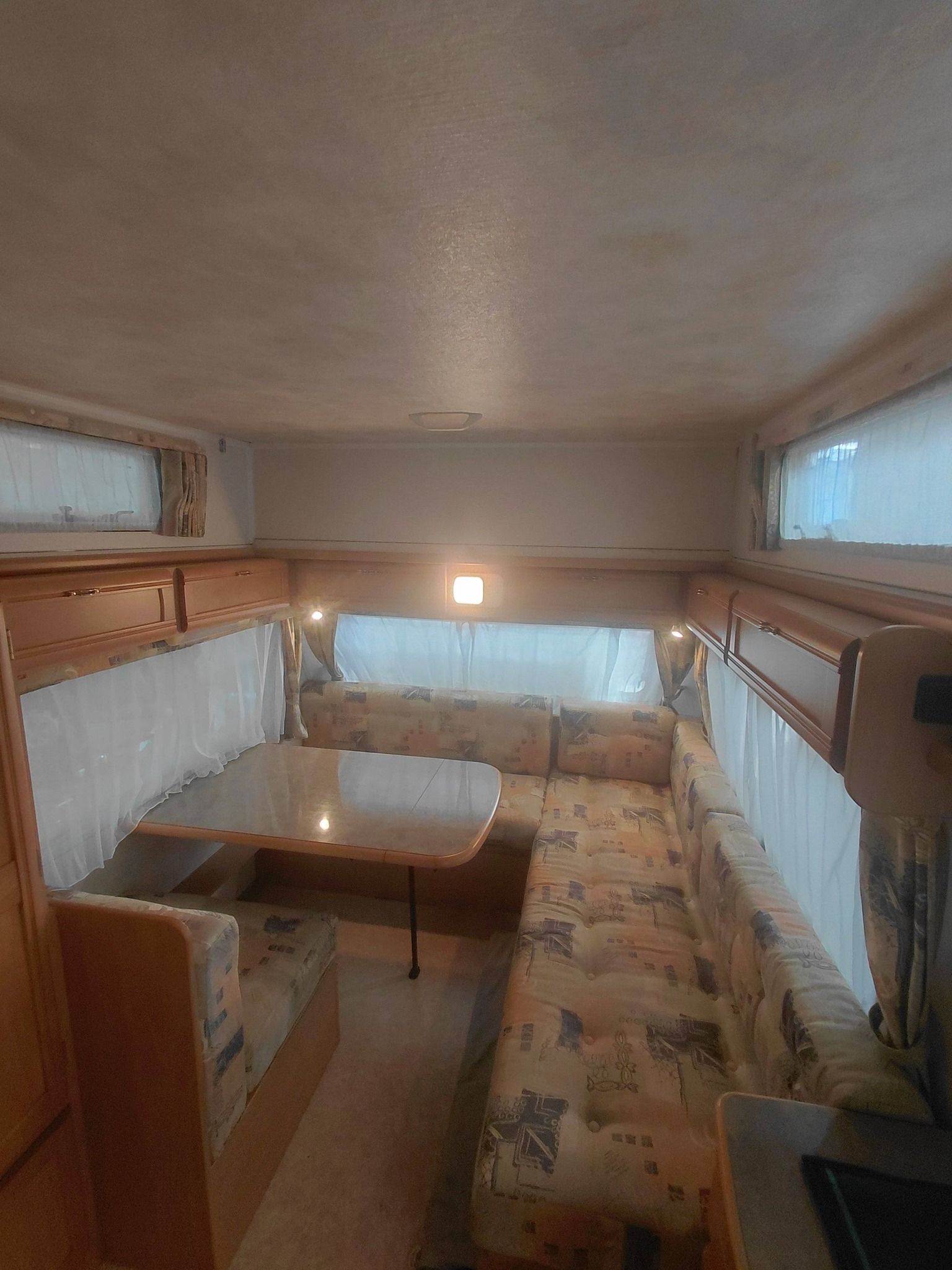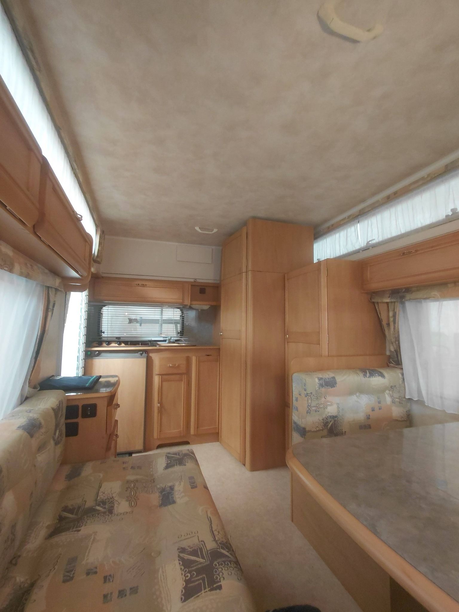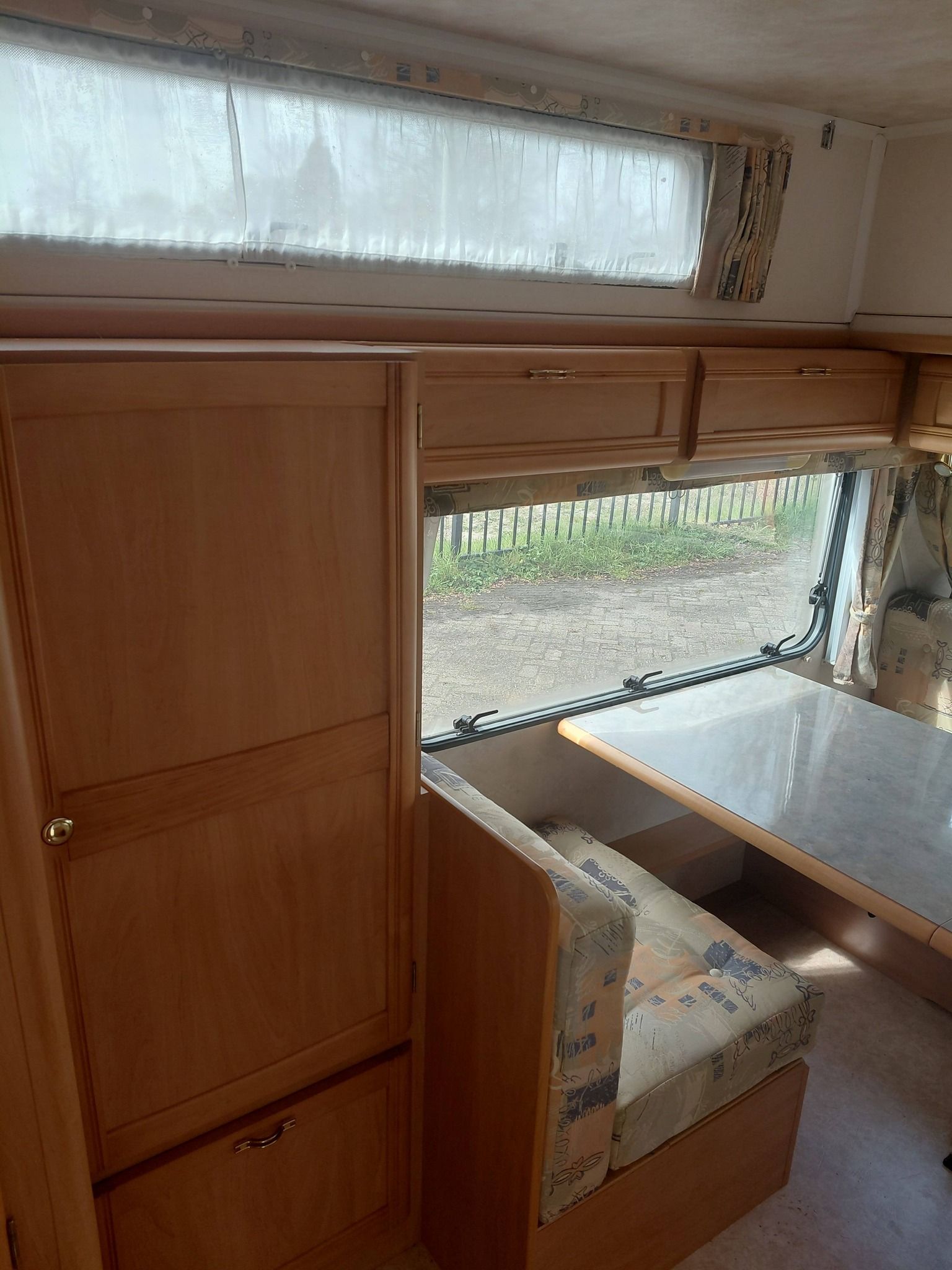 Verder overal kastjes rondom, onder banken en bed opberg ruimte overal zonsverduistering en vliegen rolgordijnen bij ramen, caravan heeft ook vaste water tank.
