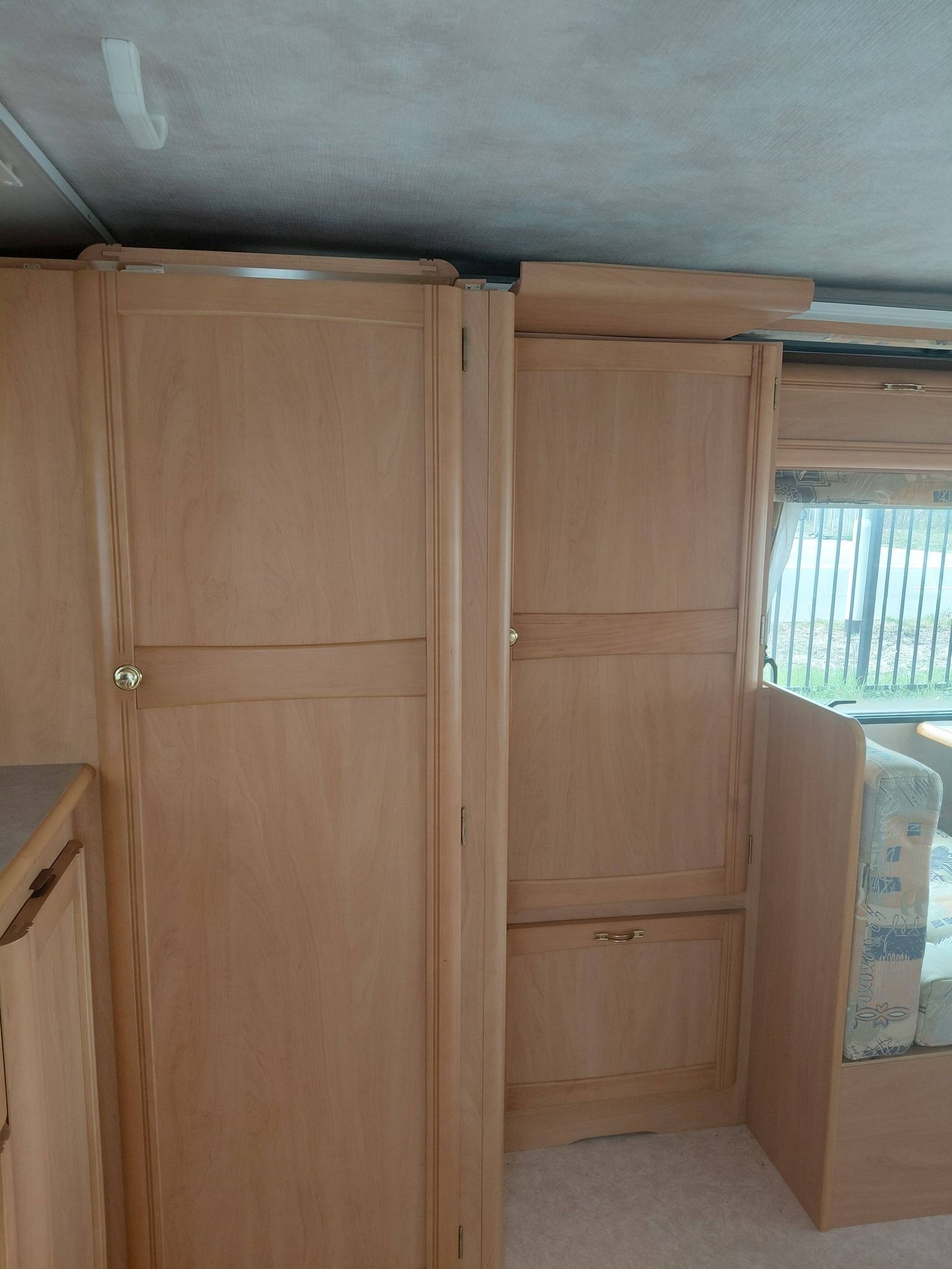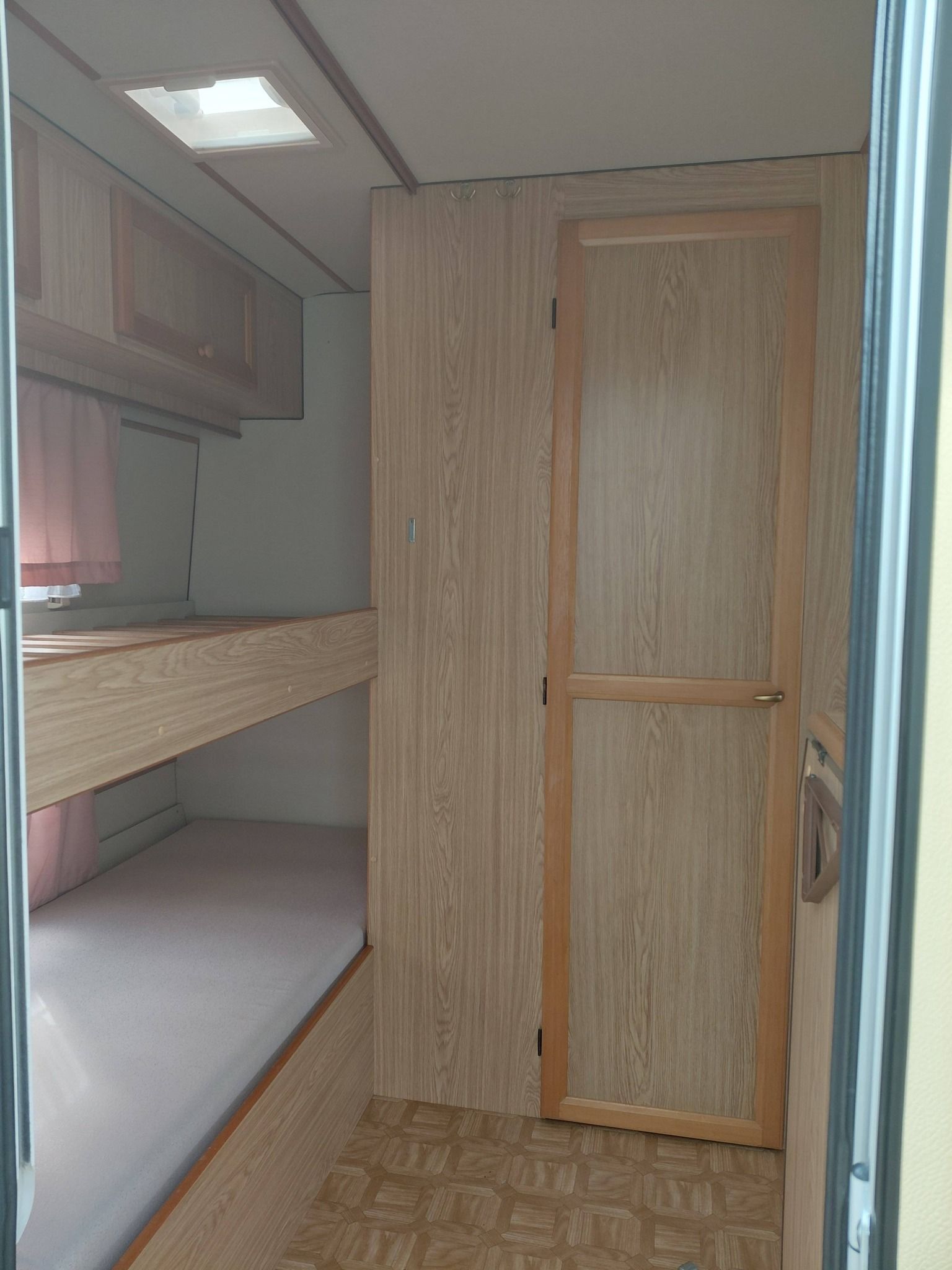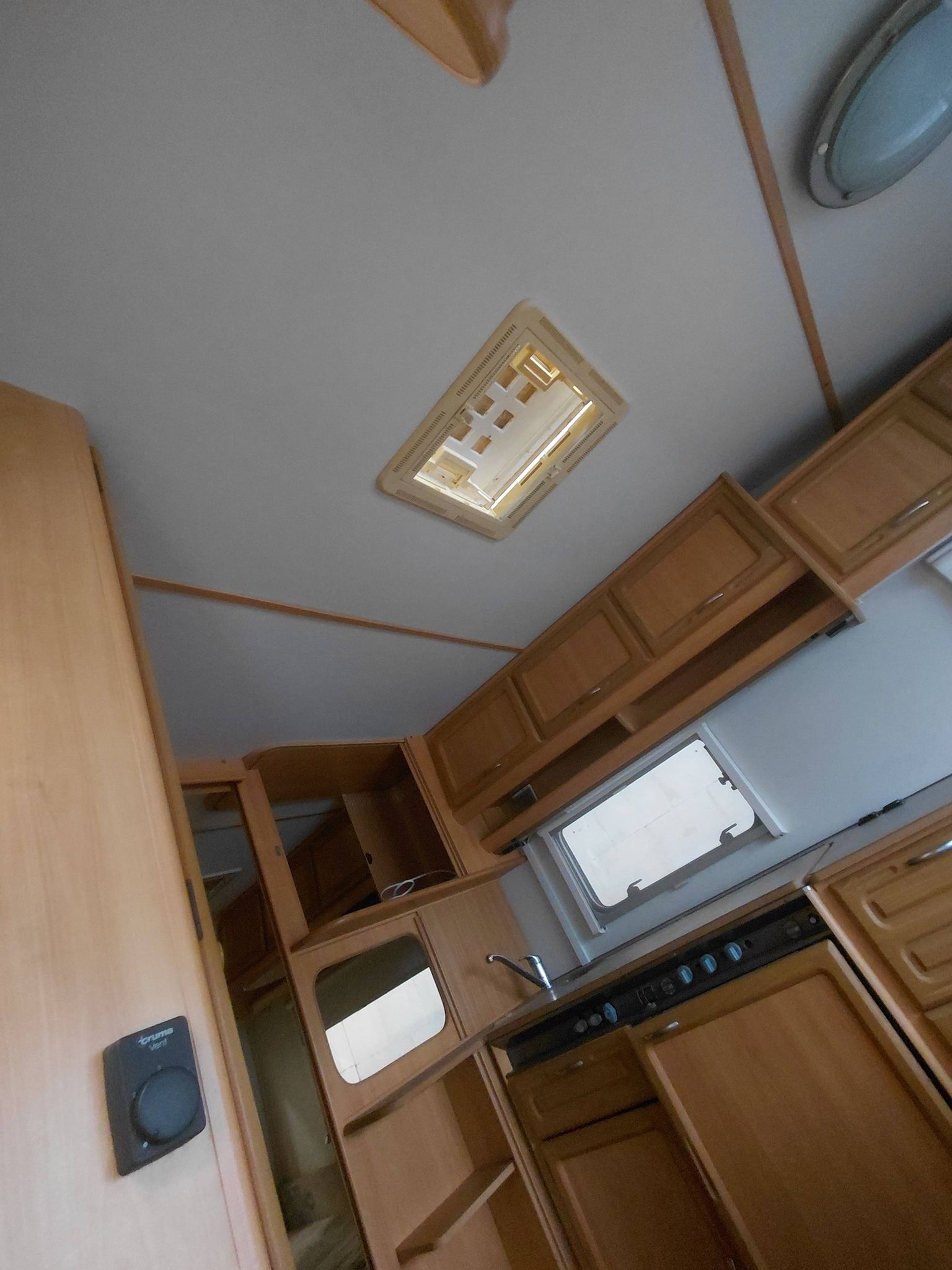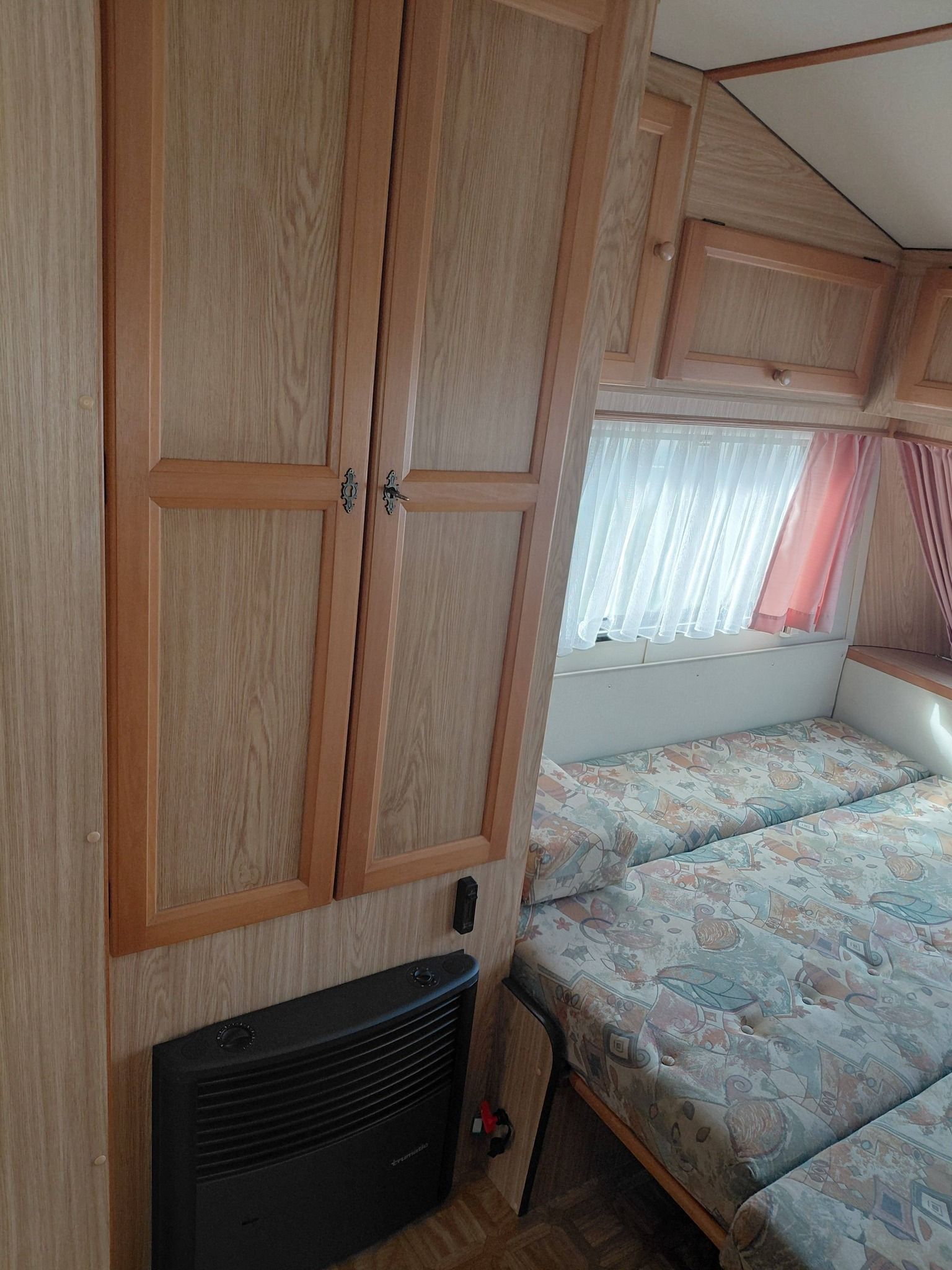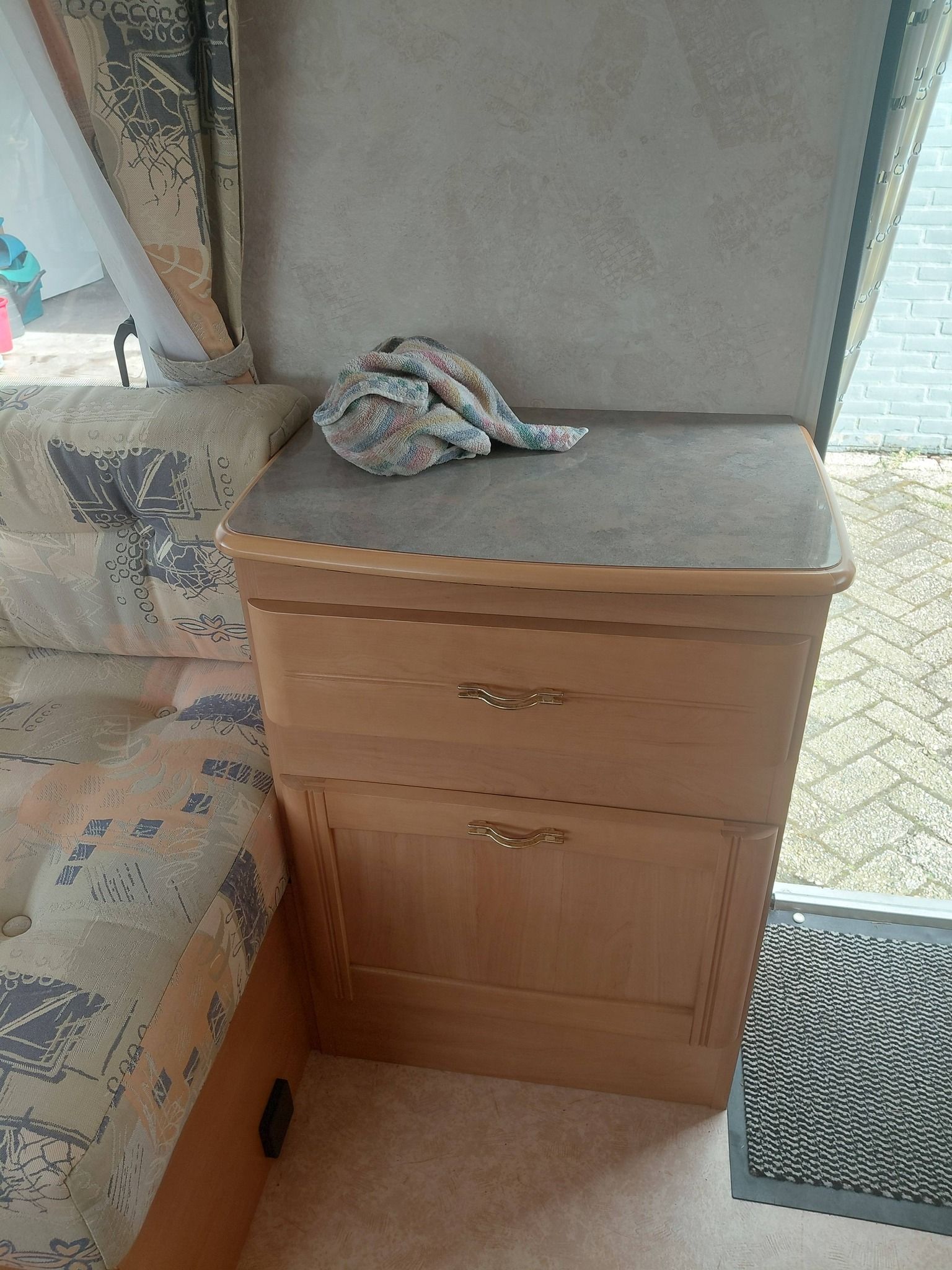 Verder overal kastjes rondom, onder banken en bed opberg ruimte overal zonsverduistering en vliegen rolgordijnen bij ramen, caravan heeft ook vaste water tank.