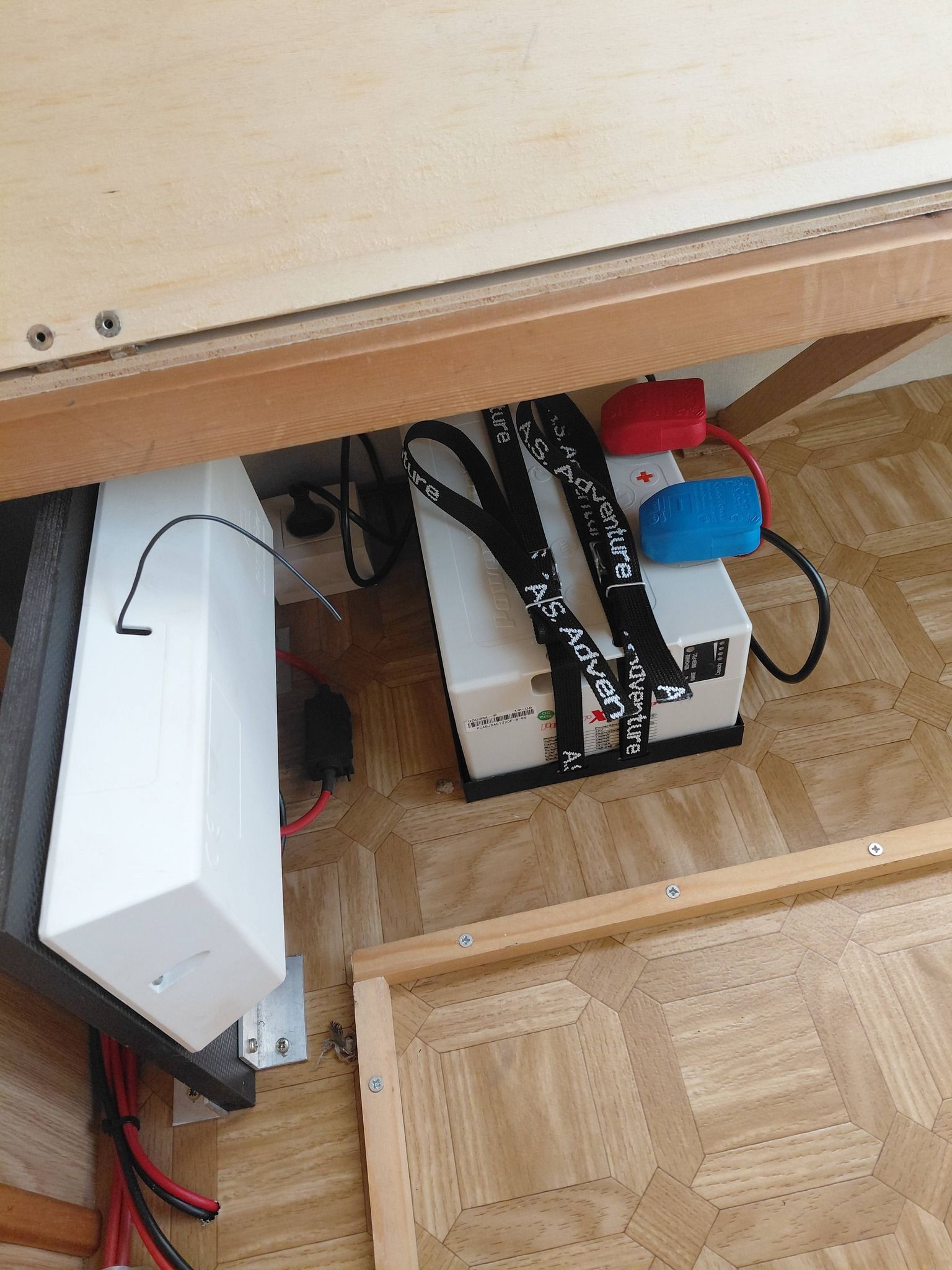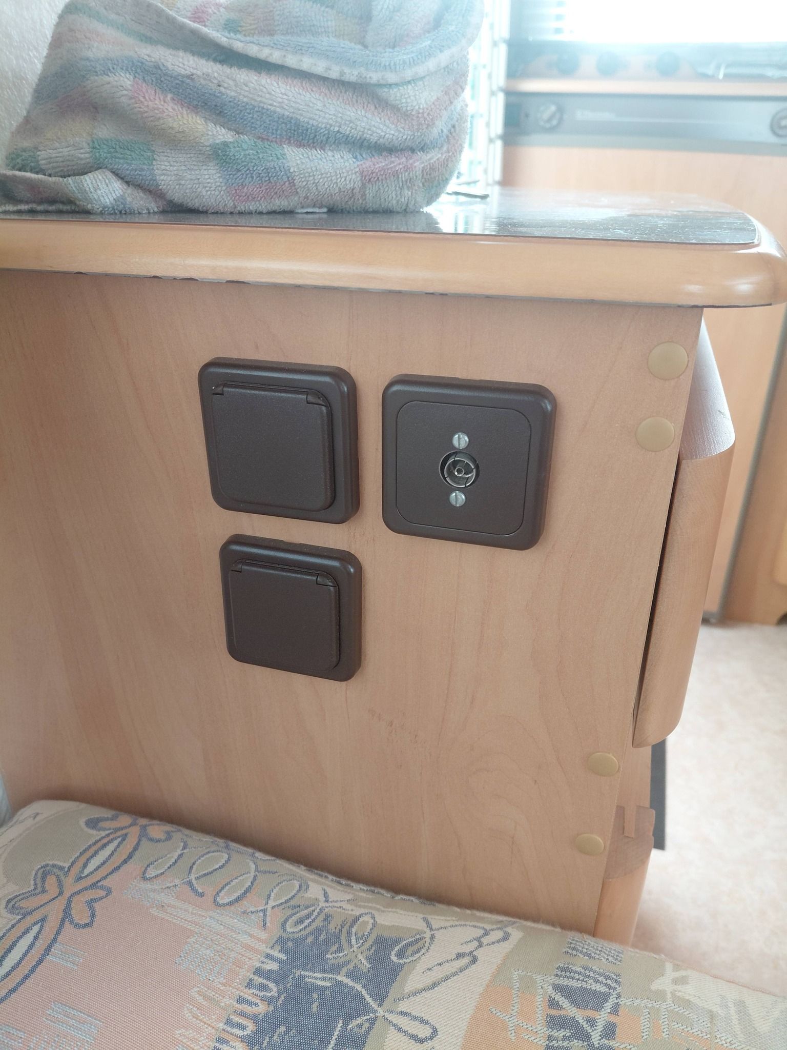 Verder zit er een mover onder de caravan van 4 jaar oud die altijd werkzaam is doordat deze accu altijd of via stroom van de auto of via 220 volt opgeladen blijft, Ook als caravan achter de auto hangt heb je binnen in caravan altijd stroom dus onderweg heb je altijd verlichting, water in de caravan en een werkende koelkast doordat er een 2de kabel is aangesloten aan de 13 polige stekker die in de auto gaat.