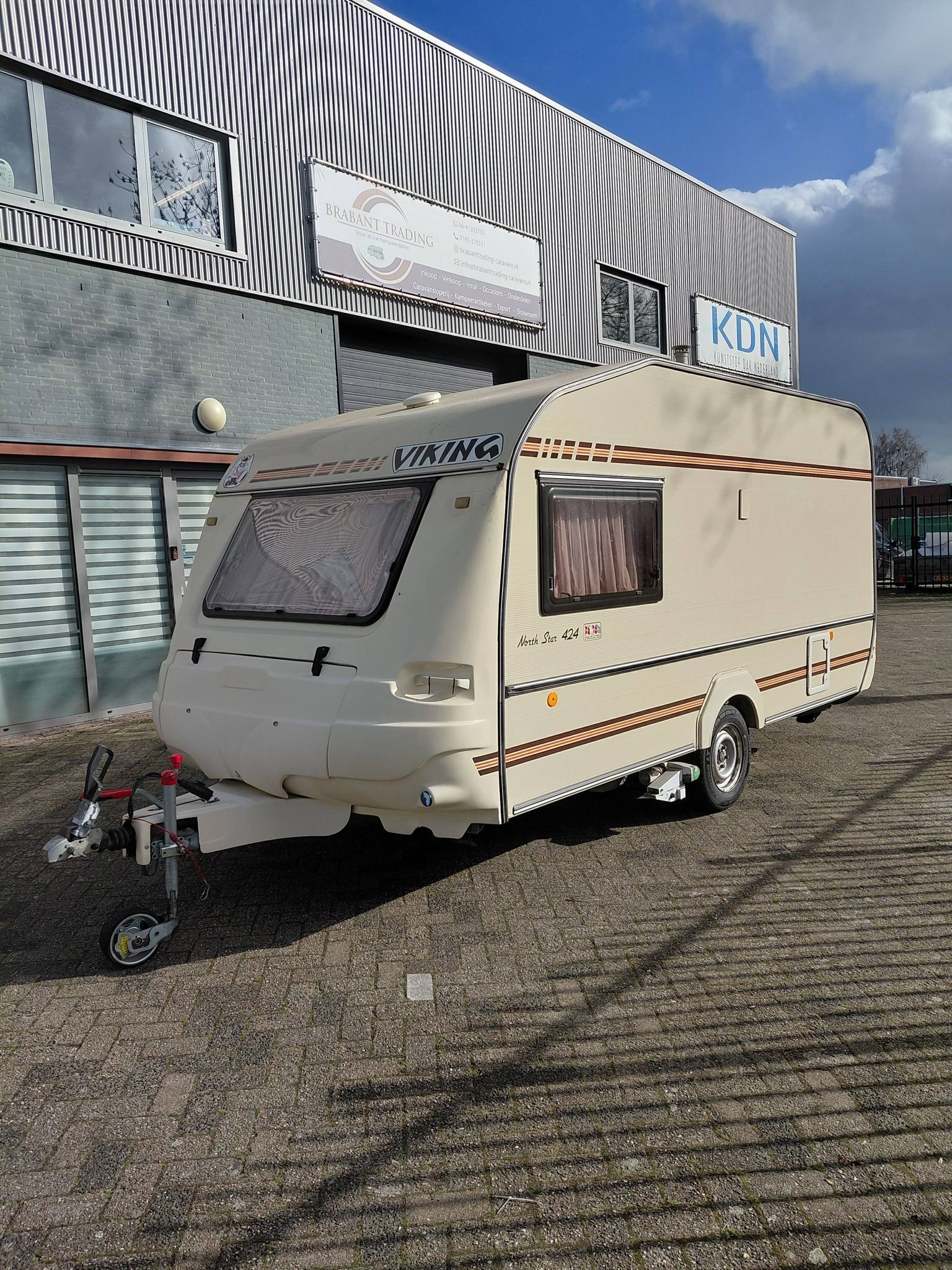 In werkelijk nieuwstaat verkerende Viking North Star 456 van het bouwjaar 2000 met mover van 4 jaar oud compleet met Belgische registratie keurings rapport geldig tot April 2026 en compleet met boekjes over caravan, stabilisator en mover. Afkomstig van eerste eigenaar.