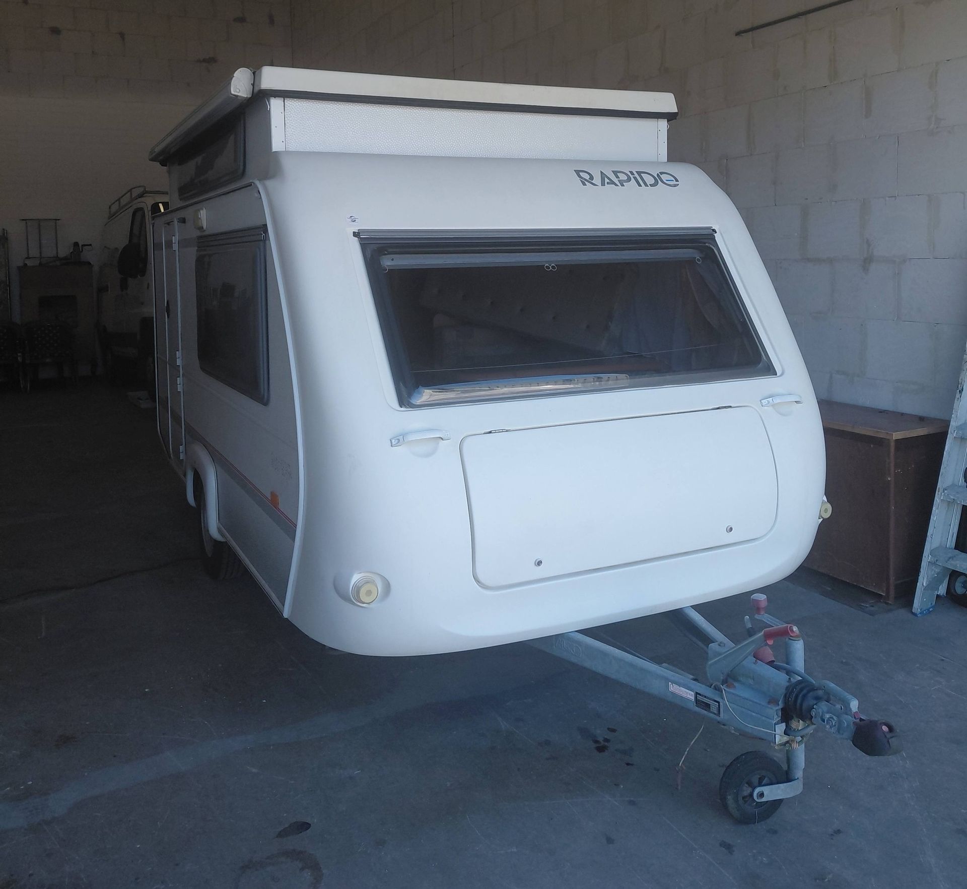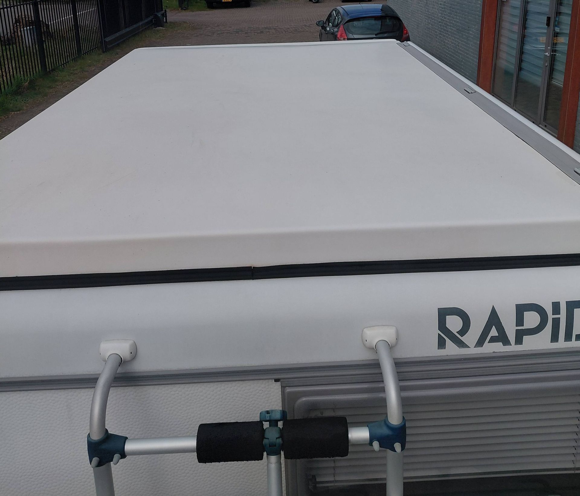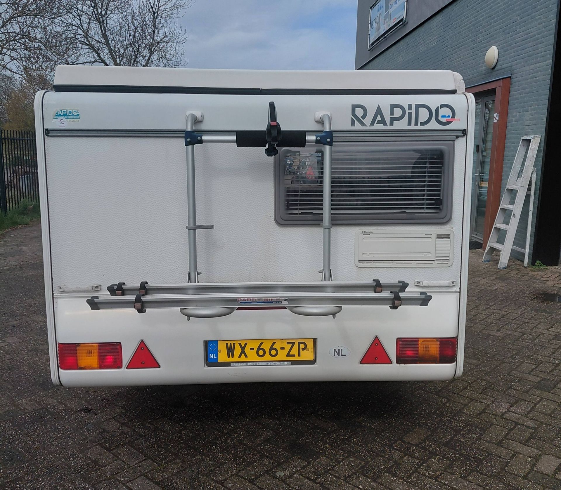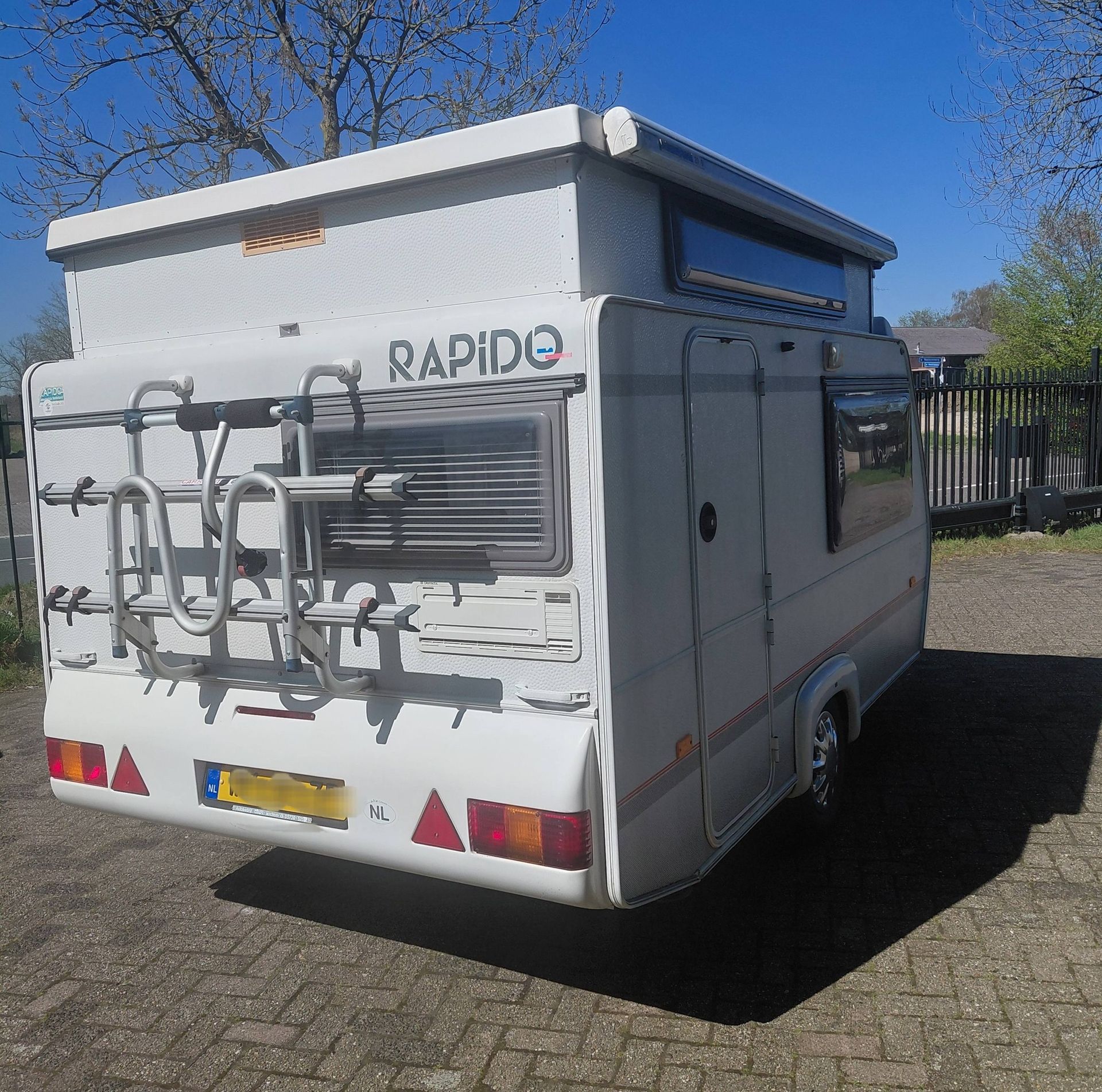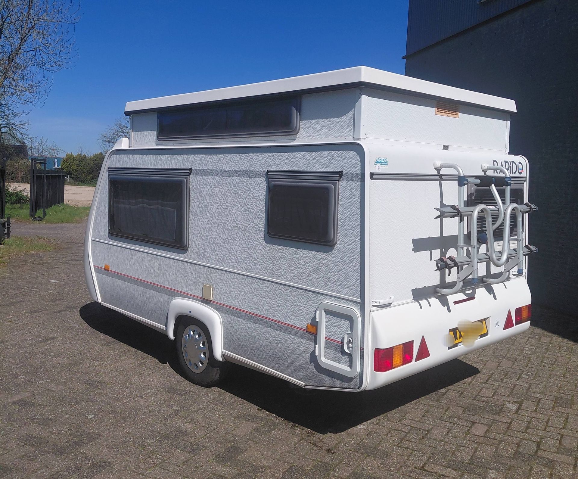 In nieuwstaat verkerende staat licht gewicht 3 persoons Rapido 905 clc afkomstig van eerste eigenaar compleet met voortent en vaste luifel, fietsen drager, 3de remlicht, 3 nieuwe banden, stabilisator, gasfles, boekjes, bij alle ramen vliegen horren en zonsverduistering en eigen kenteken.