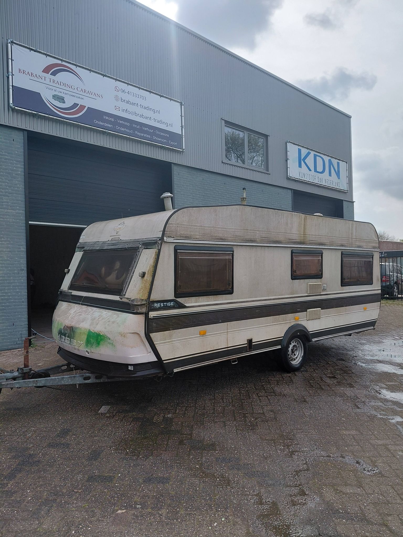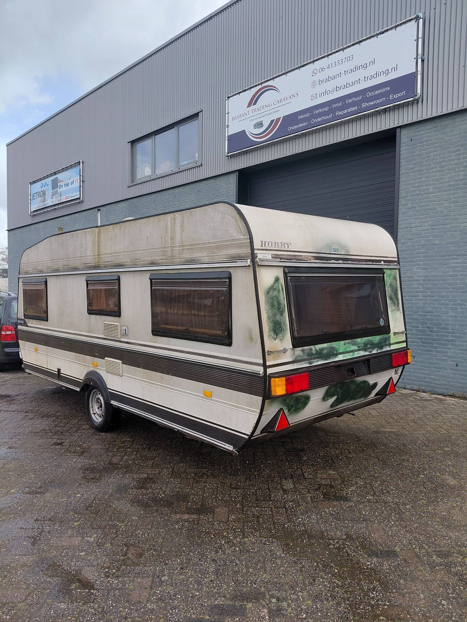 Ruime 4 persoons Hobby Prestige 520 van het bouwjaar 1989 zonder eigen kenteken of papieren en zonder voortent te rijden met het B rijbewijs.